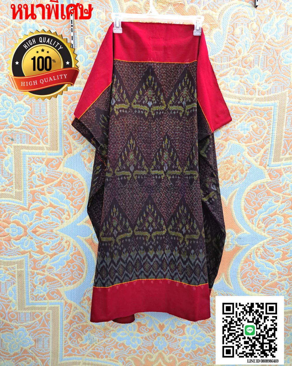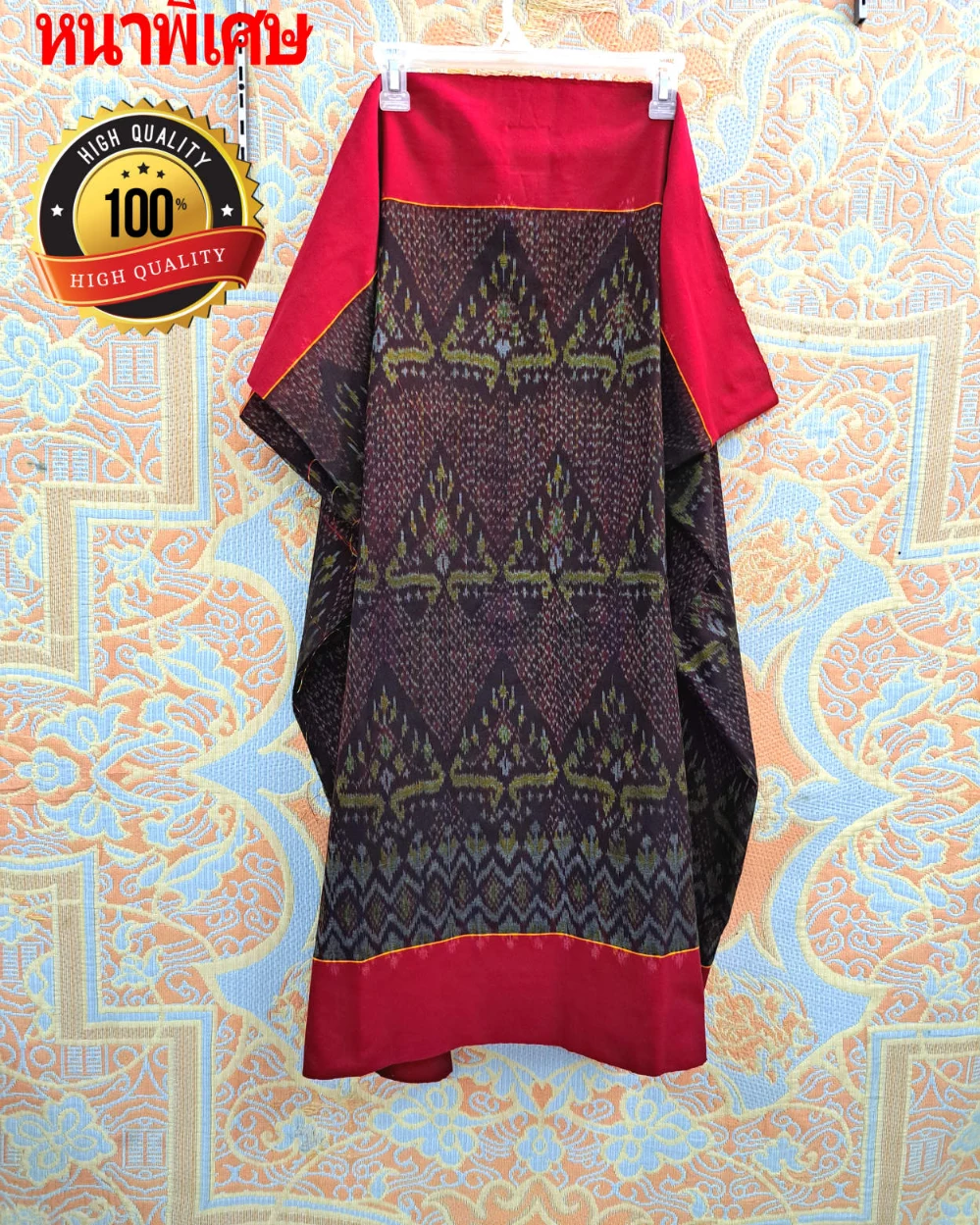 ผ้ามัดหมี่ตีนแดง ผ้าซิ่นตีนแดง ผ้าฝ้ายตีนแดง บุรีรัมย์ ผ้าทอพื้นเมือง ขนาดยาว 2 เมตร ทำผ้านุงโจง ตัดชุด จำหน่ายทั้งปลีกและส่ง